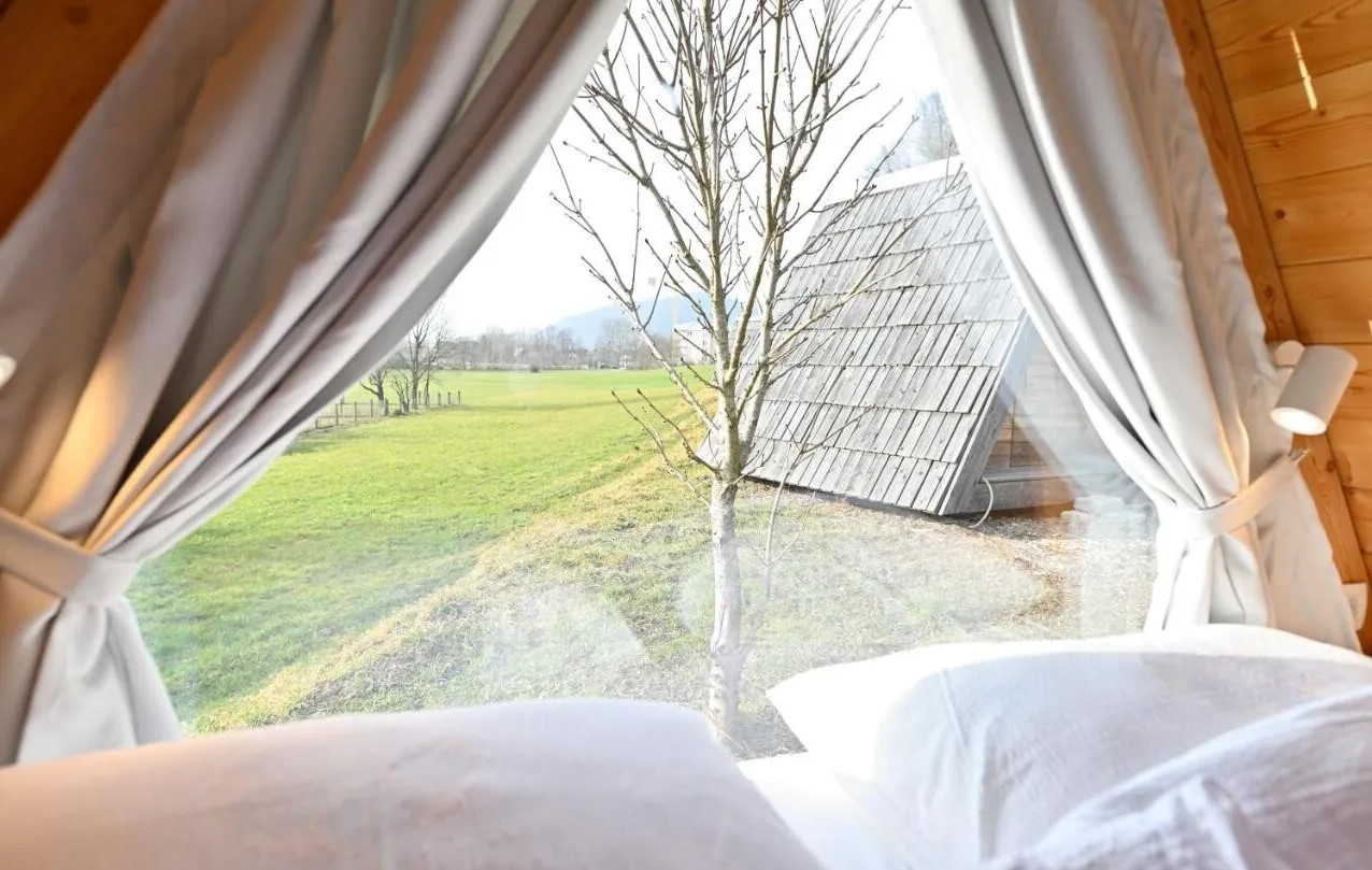 At Krištof, you can stay in one of the numerous wooden-clad apartments with two to four beds or in double-bed glamping villas in the midst of a meadow. In both cases, you’ll be greeted in the morning by fresh air and an organic breakfast featuring milk from Velika Planina and eggs from locally raised free-range hens.