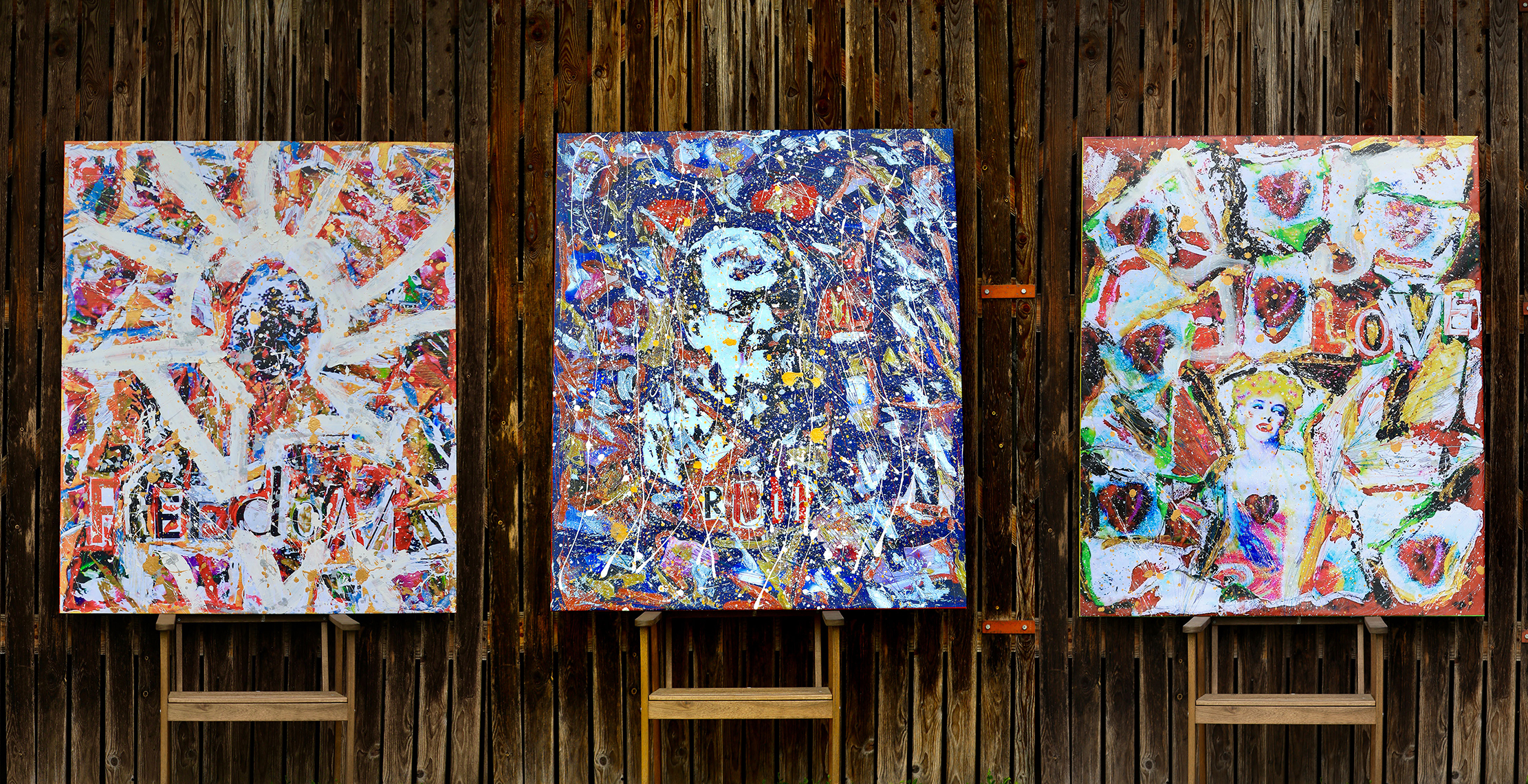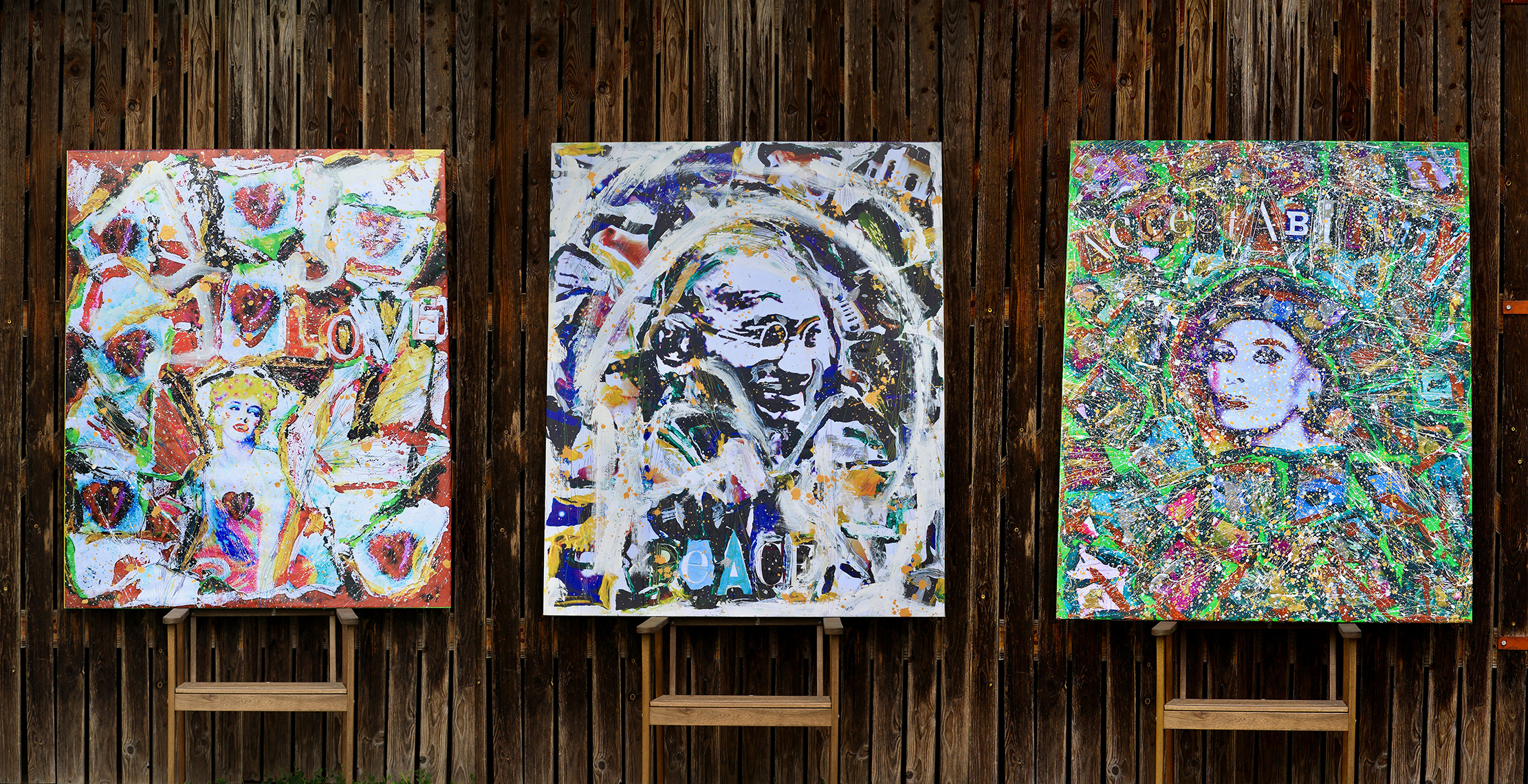 Portraits are 120 cm x 145 cm x 5 cm (47 in x 57 in x 2 in).