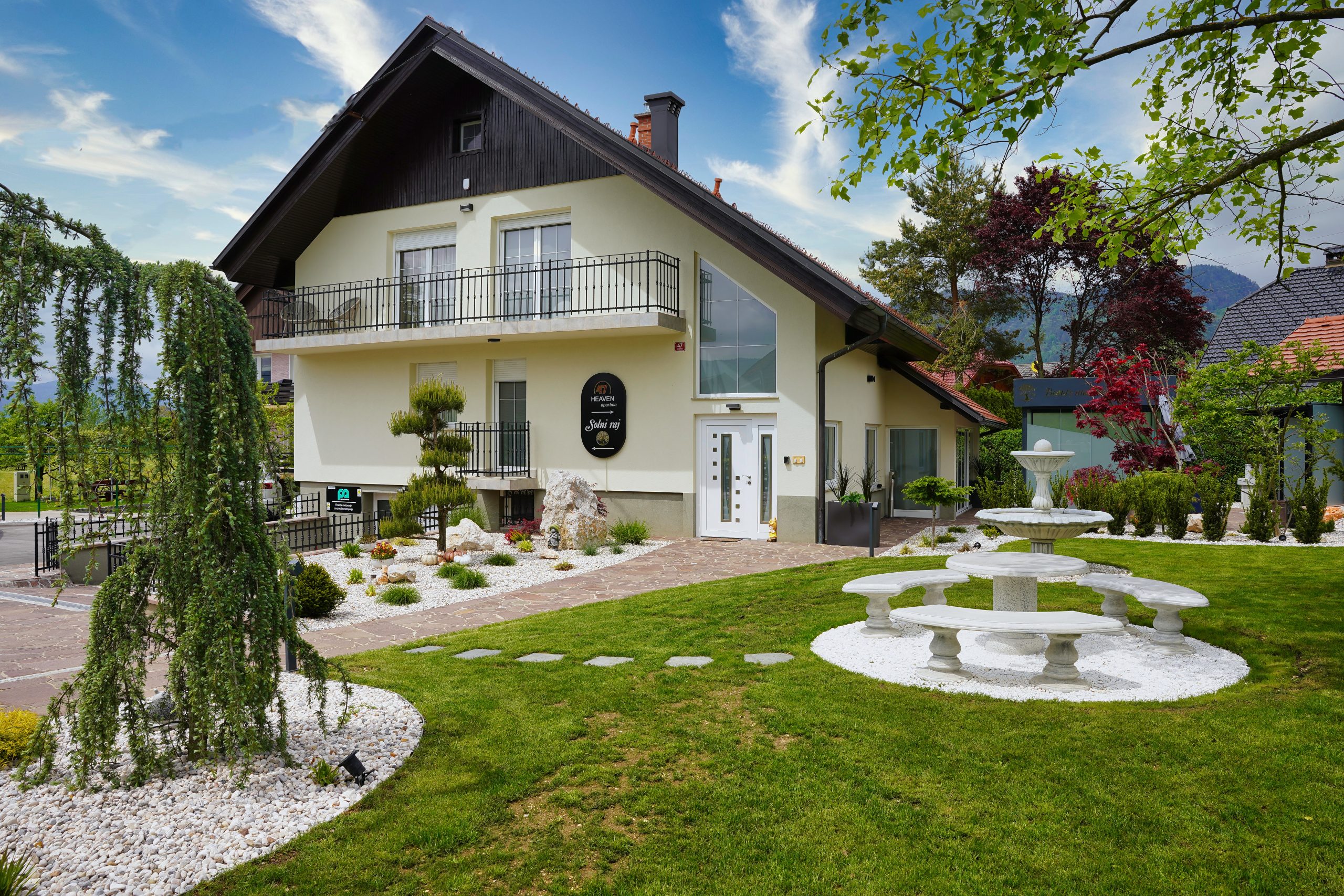 Come to the northern Slovenian countryside by staying in a luxury apartment, relaxing your body and soul in a sauna or jacuzzi or getting salt therapy to strengthen your immune system. The villa sits in beautiful nature near Radovljica and Lake Bled. It is ideal for cycling, enjoying culinary delights and wine tasting.